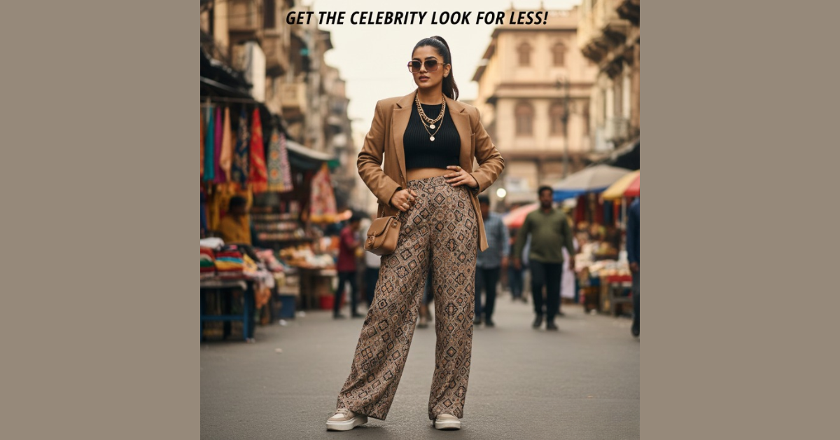 Styling Tip: Opt for a sleeveless or halter-neck blouse to elevate the modern vibe.