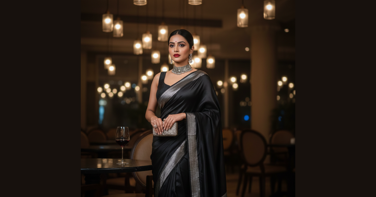 Monochrome sarees are chic, powerful, and effortlessly stylish. They’re perfect for women who love contemporary elegance.