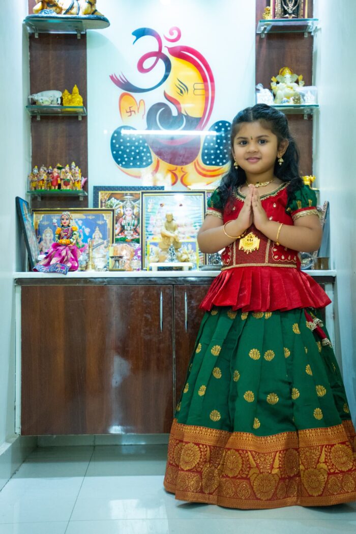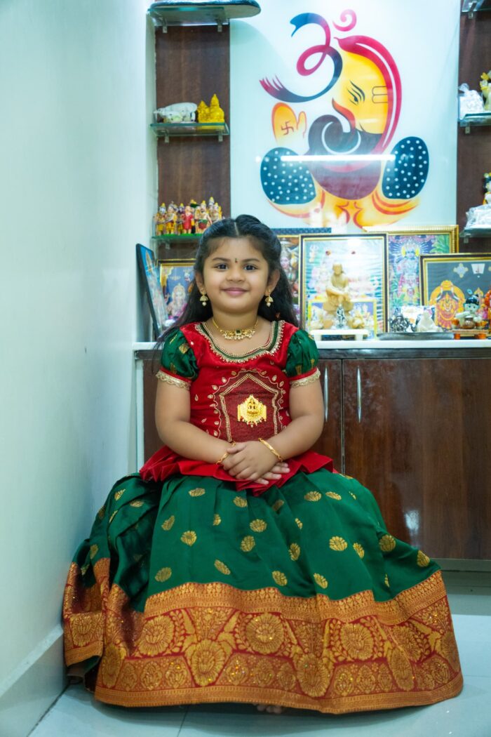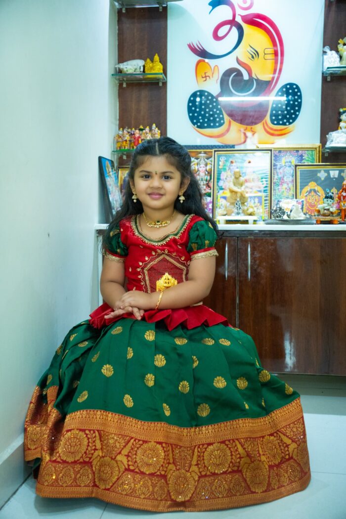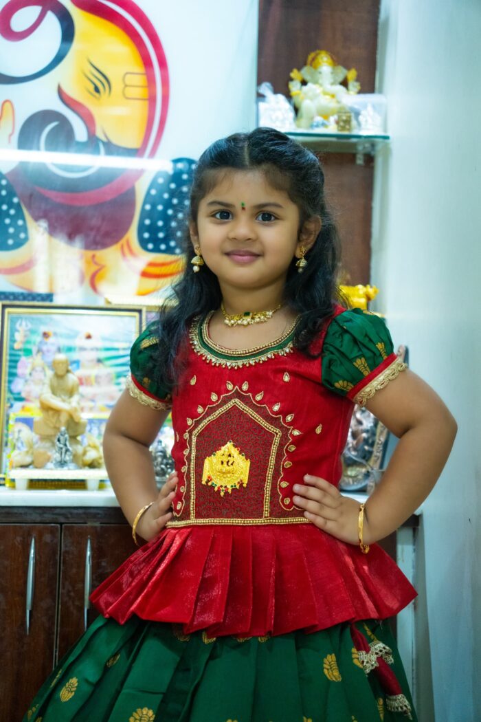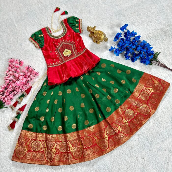 Red and Green South Indian Lehenga Pavadai and Top