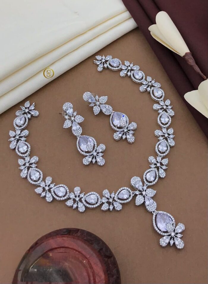 American diamond jewelry, often made from cubic zirconia (a high-quality diamond simulant), is a popular choice for its brilliant sparkle and affordability. It offers the glamour of real diamonds without the high price tag. Here’s how you can style American diamond jewelry, especially with sarees.