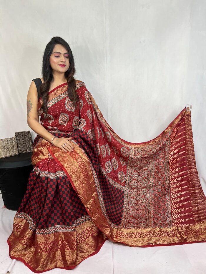 Ajrakh block print vegetable dye saree