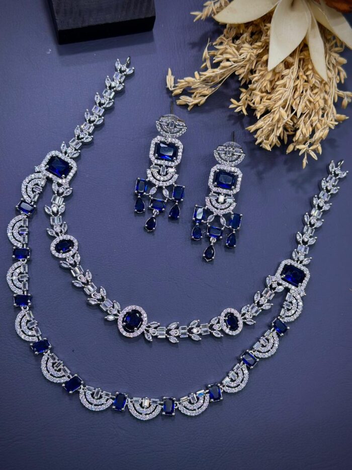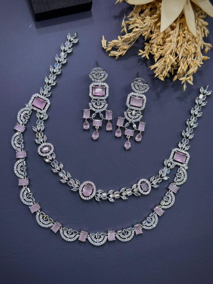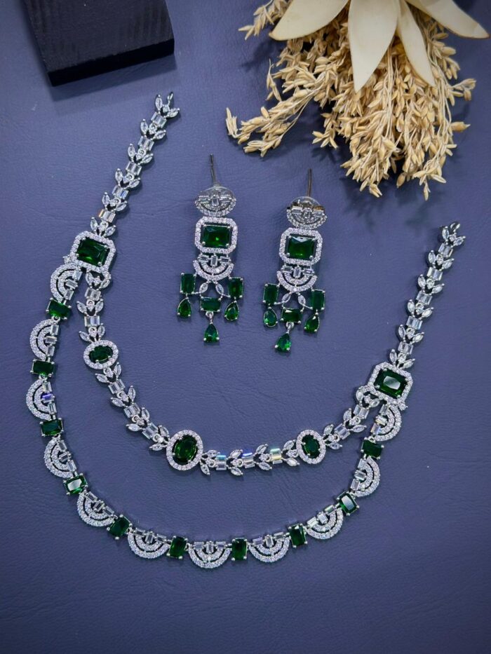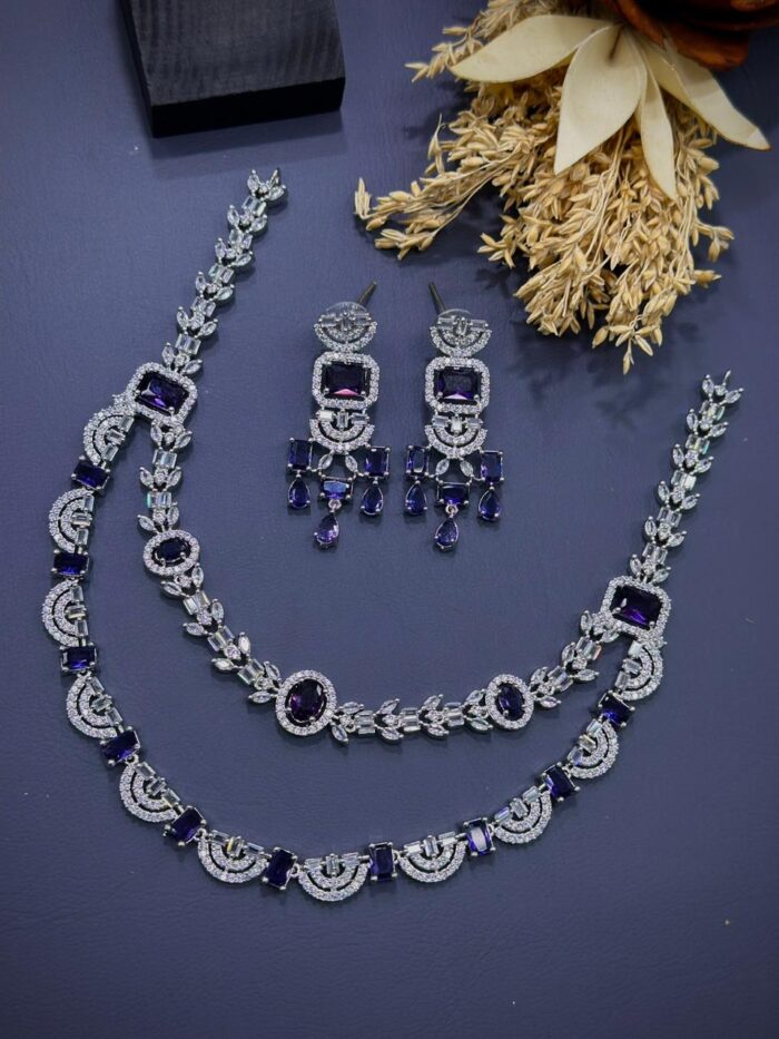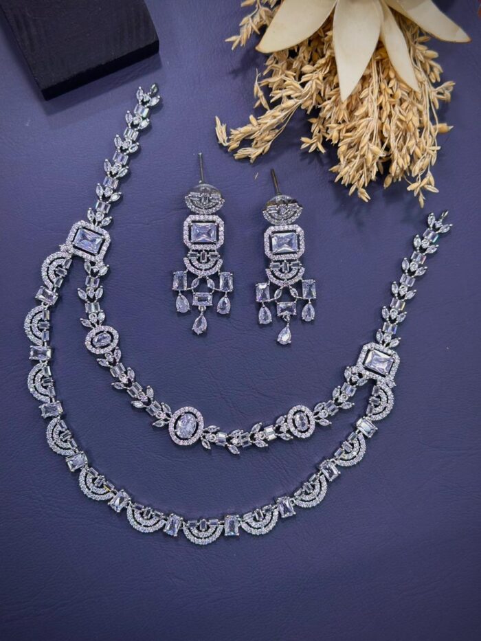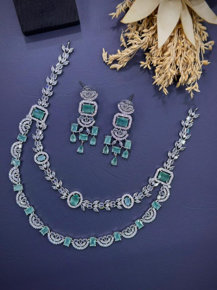 These American diamond stone necklace sets have stones that are synthetic or lab-created diamonds that mimic the appearance of natural diamonds.