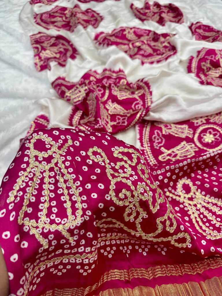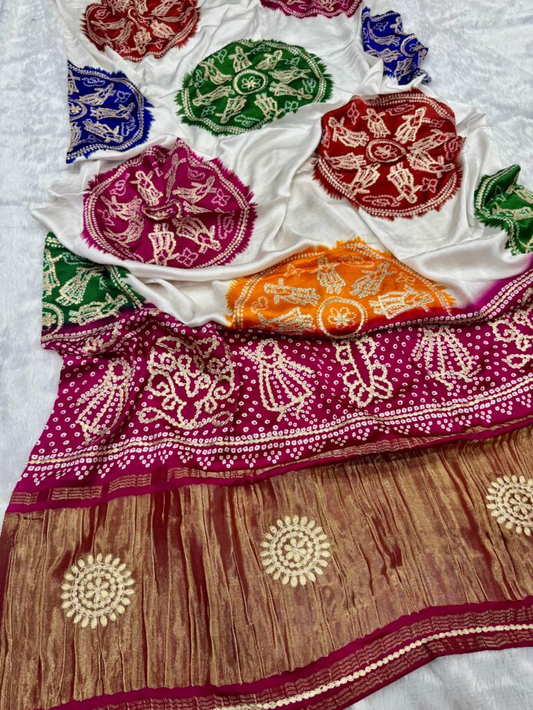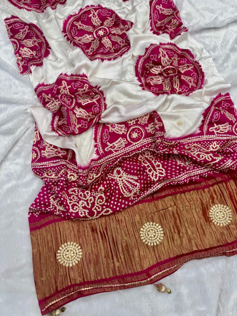 Awesome Bandhej Print With Lagadi Pallu Saree With Tussle