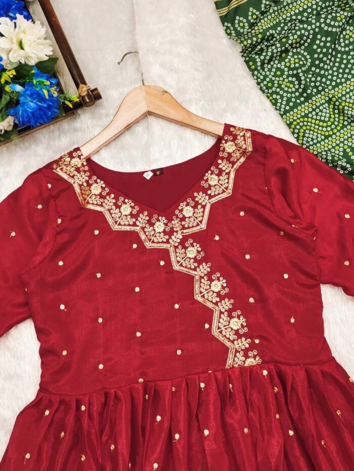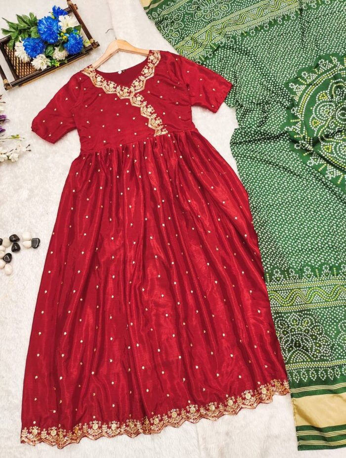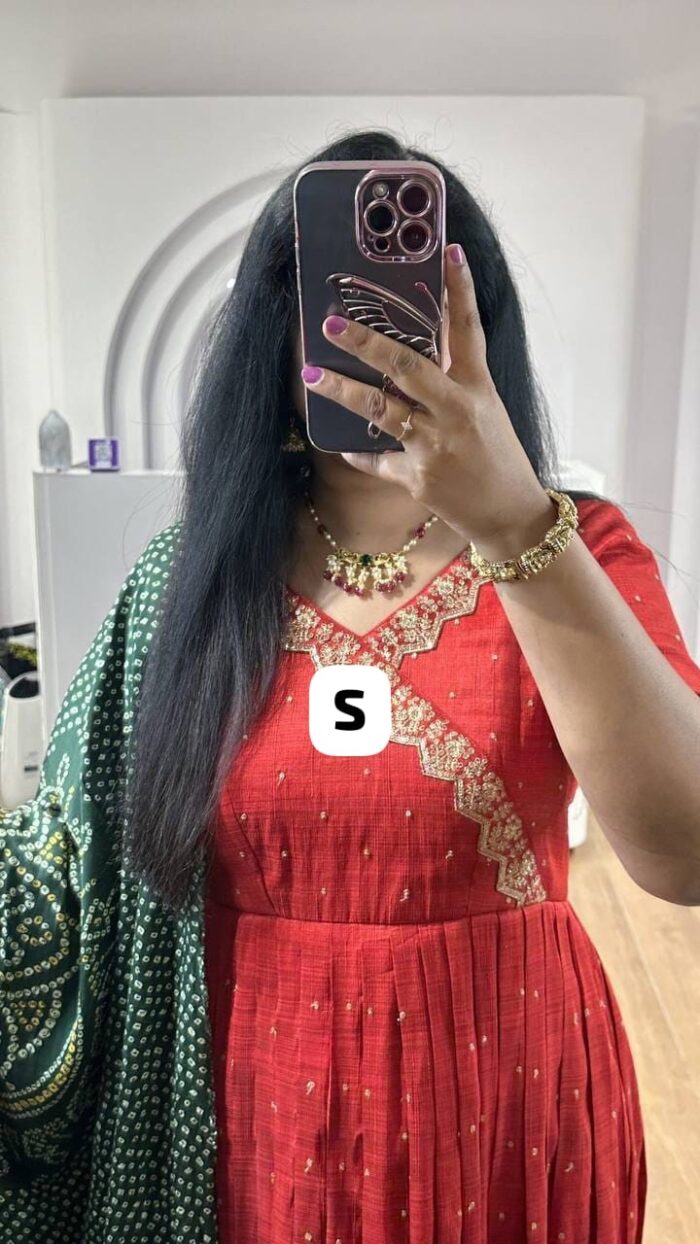 Beautiful Red Gown with contrast green dupatta