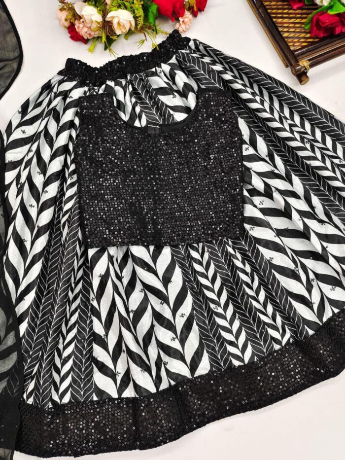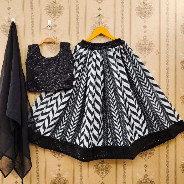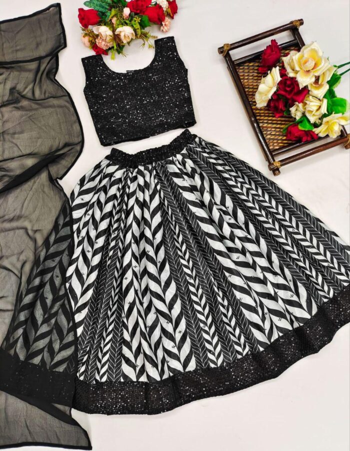 Trending Sequins Embroidered with Beautiful Printed -Work Stitched lehenga -Blouse with Dupatta For Festive Season