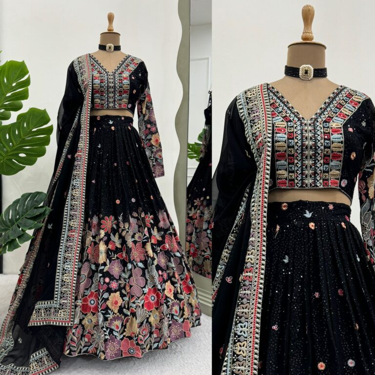 Black georgette lehenga with embroidery