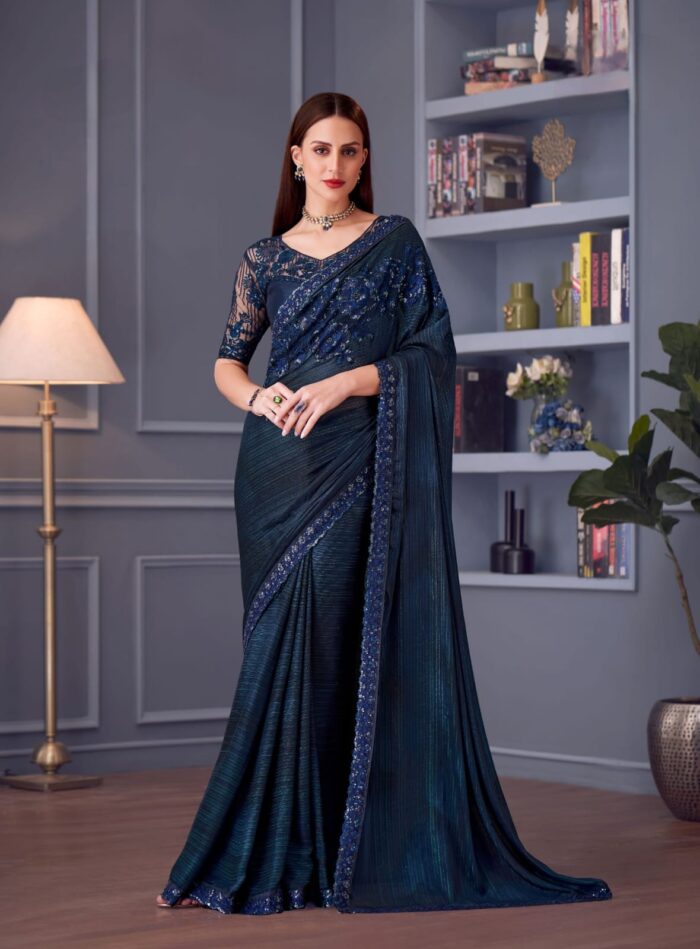 Blue Blossom Glitter Silk Saree