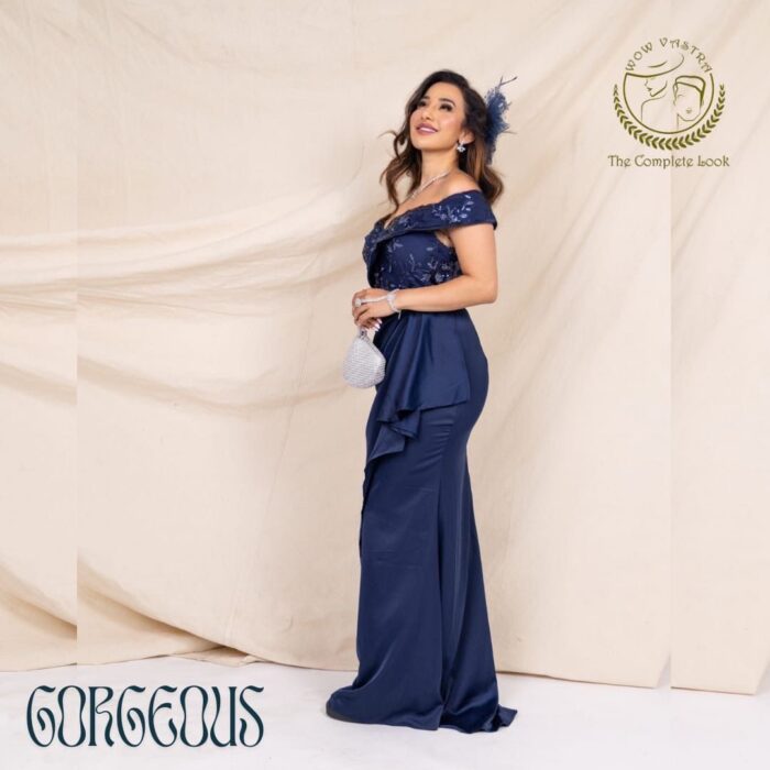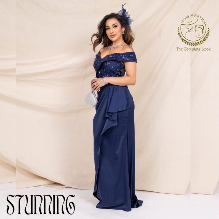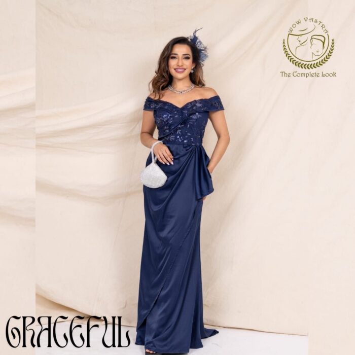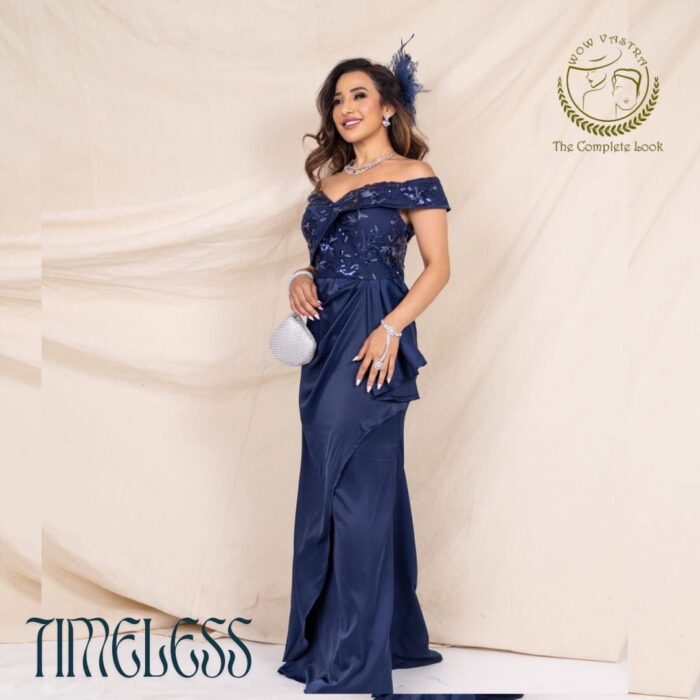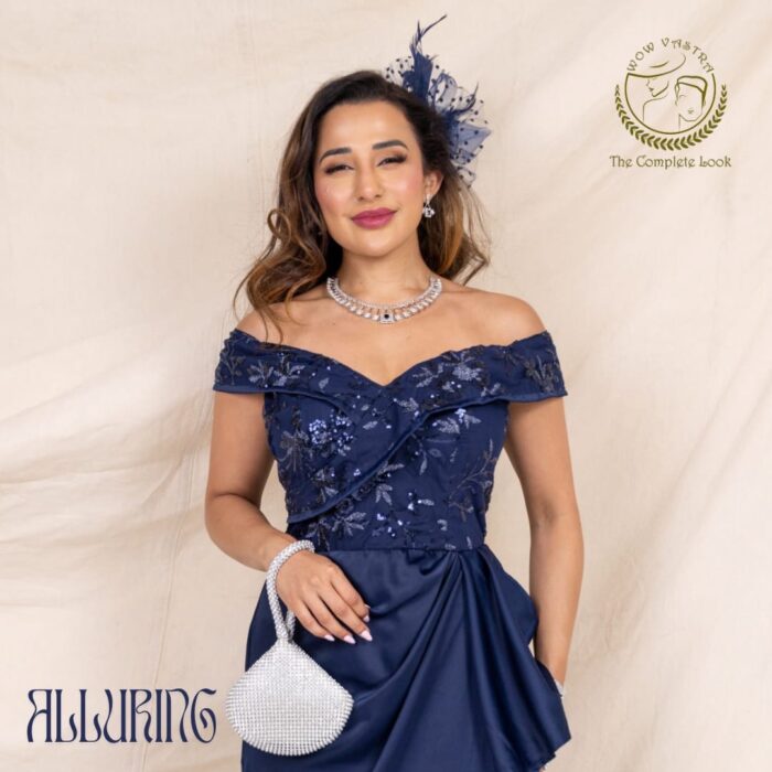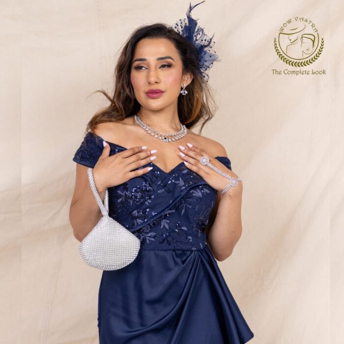 Step into elegance with our luxurious satin gown featuring a graceful net overlay – the perfect blend of royalty and style. Paired with a shimmering American diamonds necklace on a silver base and a statement potli bag, this look is made to dazzle. Perfect for weddings and parties!💎✨