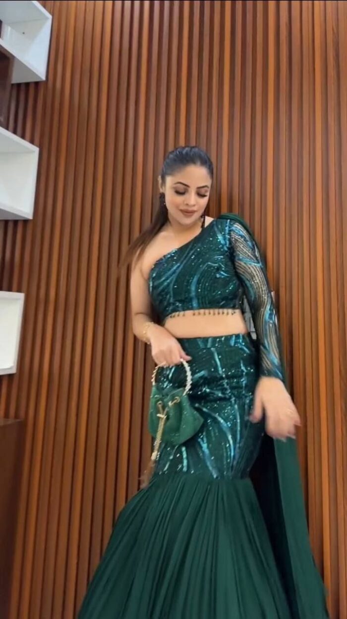 Blouse : Premium Net Embellished With Beautiful Embroidery Sequins Work Both Side Work Front And Back With Attached Dupatta Of Heavy Georgette Ruffle Layers Dupatta 2.5 MTR( Full Stitched Blouse Upto Xxl