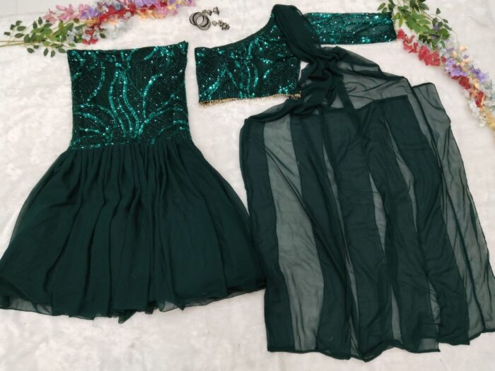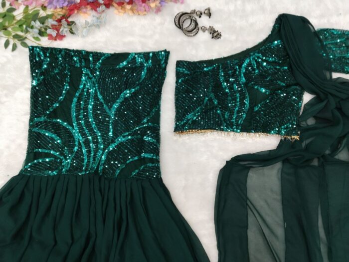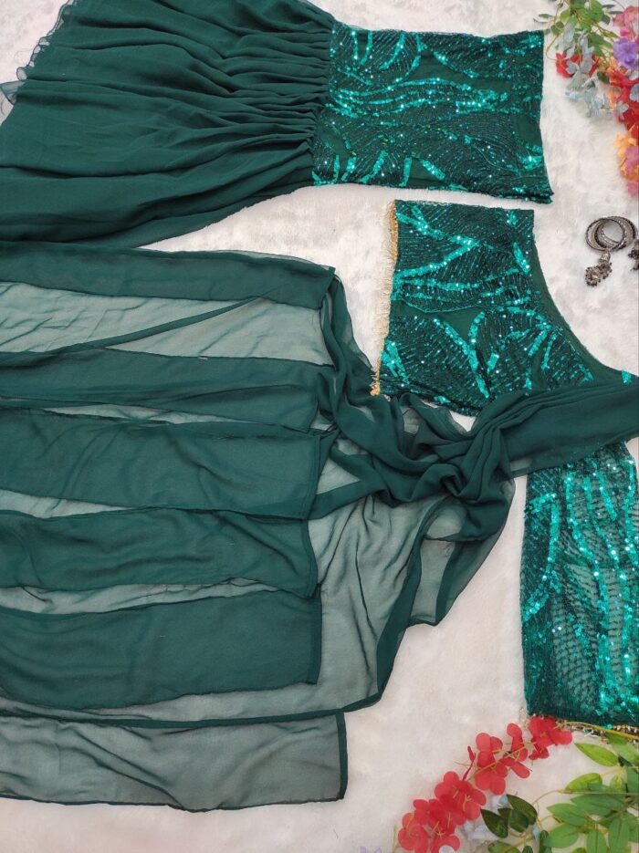 Bottom Wear : Premium Georgette Embellished With Beautiful Embroidery Sequins Work On Net Fabric With Heavy Cancan( Full Stitched Upto Xxl)