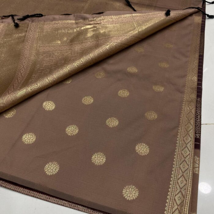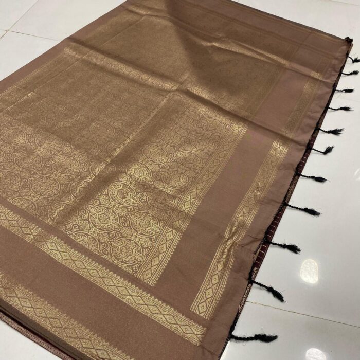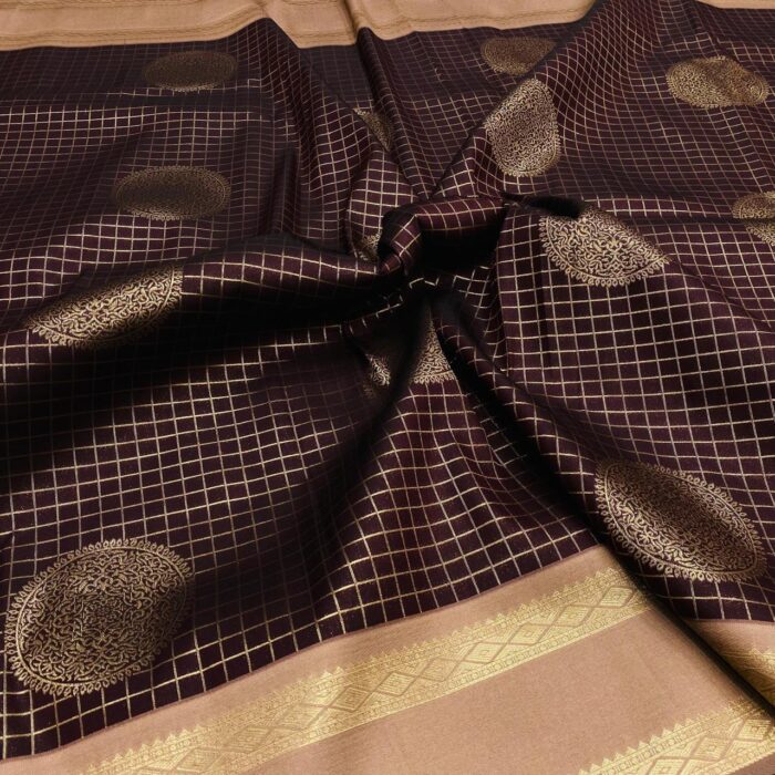 Brown Checked Soft Silk Saree