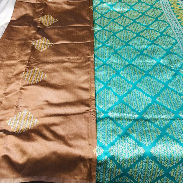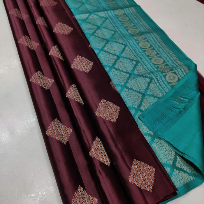 Brown with teal pallu Arani silk saree