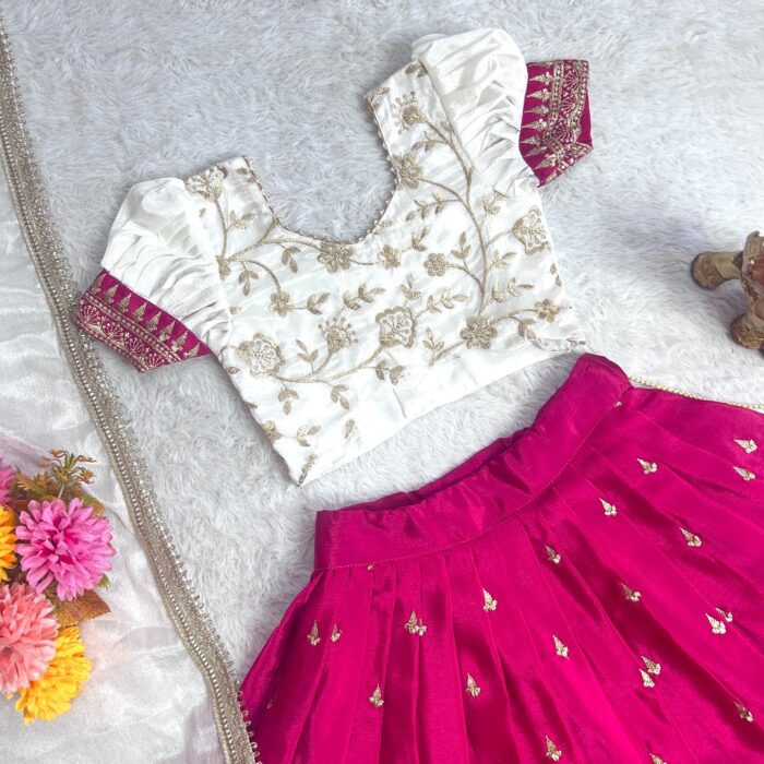 Presenting Our Real Modeling Shoot of our Top Selling Embroidery Lahenga Blouse & Dupatta with Heavy Thread-Embroidered Design.
