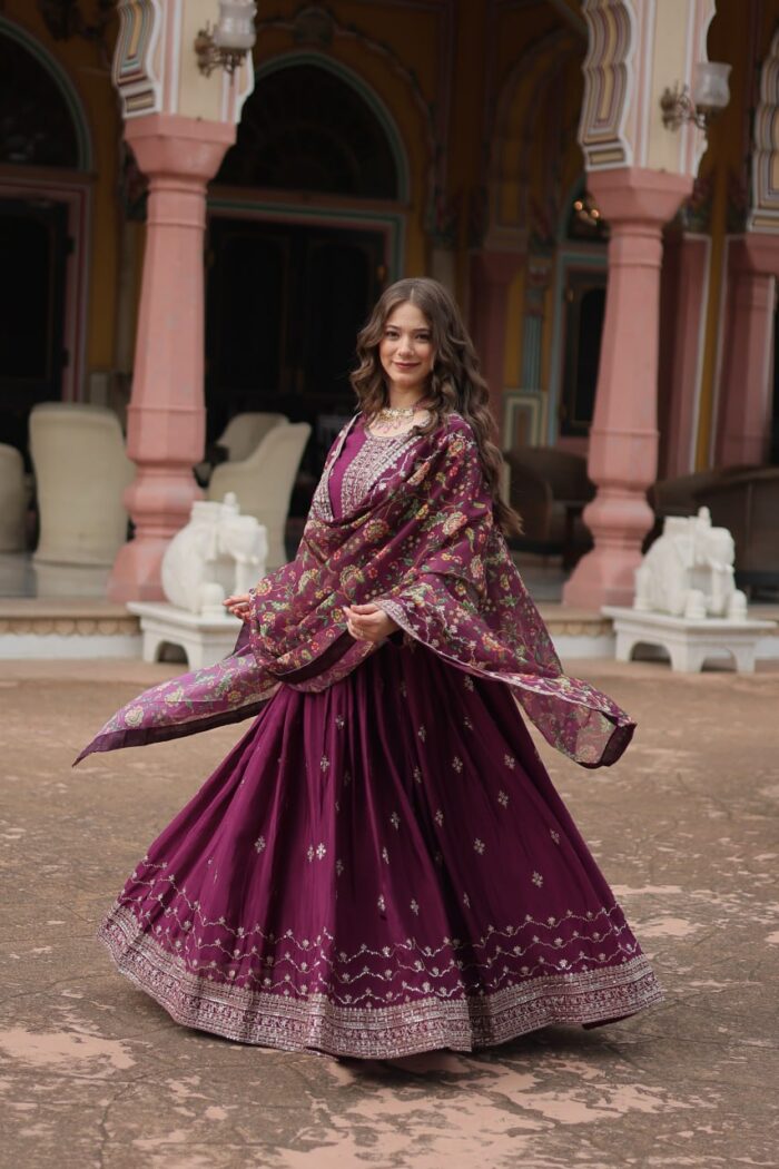 Get ready to shine with these stunning outfit Made from Chinon And Sequins Embroidered Work. Discover the perfect ensemble to add a touch of glamour to your wardrobe and stand out from the crowd.