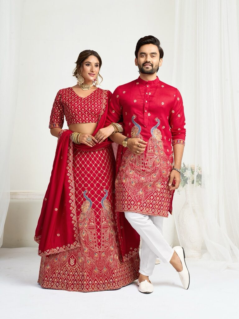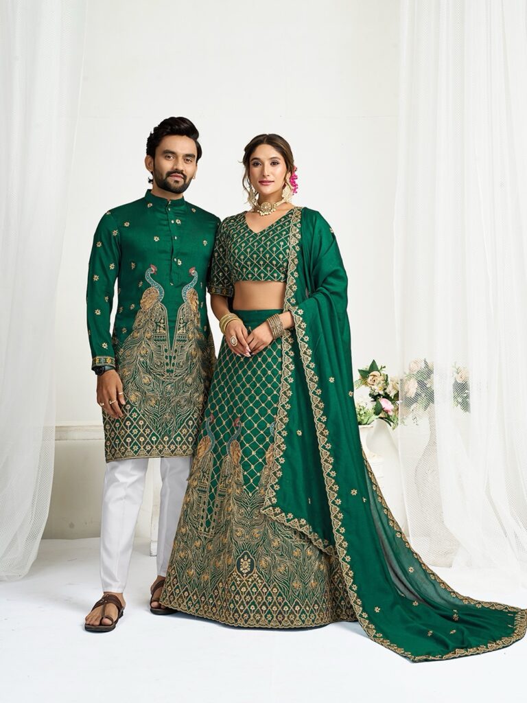 Couple combo Silk embroidered lehenga choli and silk kurta