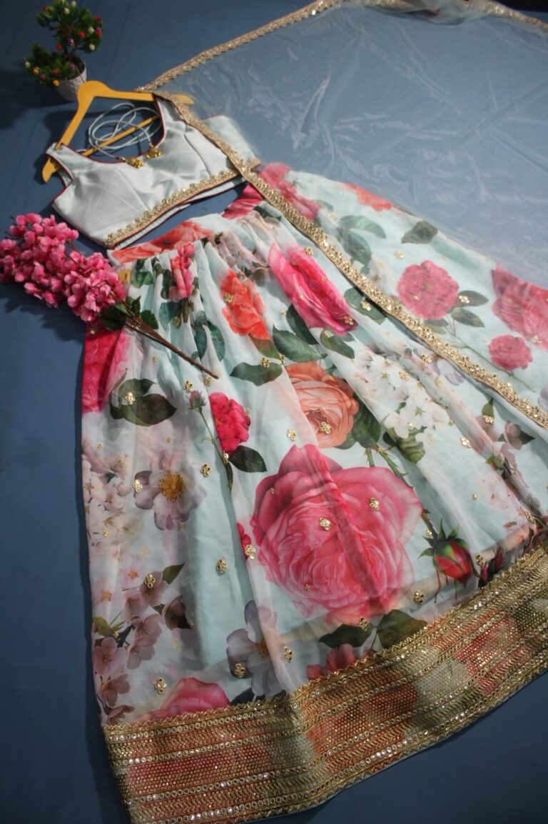 Digital floral printed organza sequins lehenga choli with dupatta