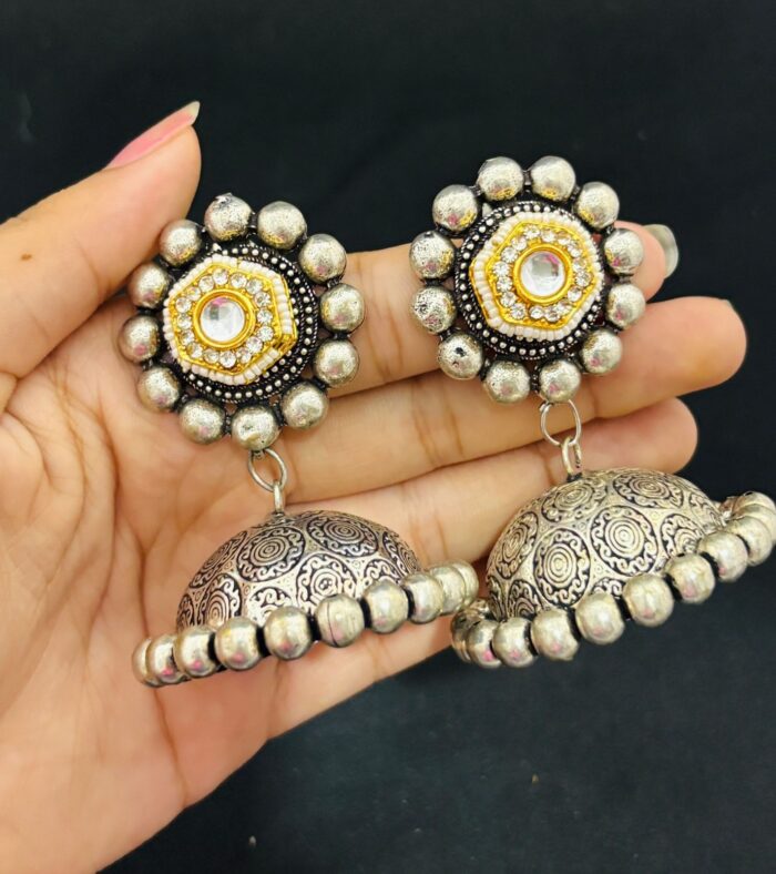 Kundan stone oxidised jhumka earrings
