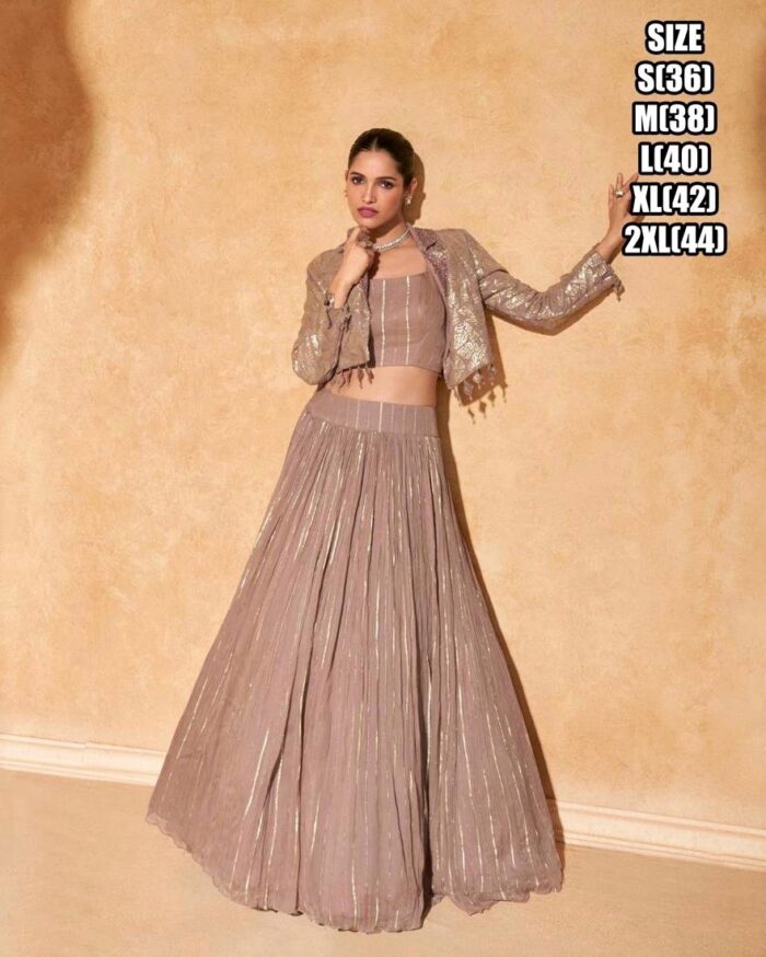 *Fabric – Real Premium Chinon Silk / Viscose Jacquard Skirt( Front And Back Embroidered With Cancan )*