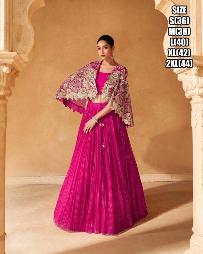 *Fabric – Real Premium Chinon Silk / Viscose Jacquard Skirt( Front And Back Embroidered With Cancan )*
