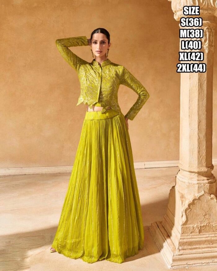 Green Embroidered chinon silk lehenga with jacket