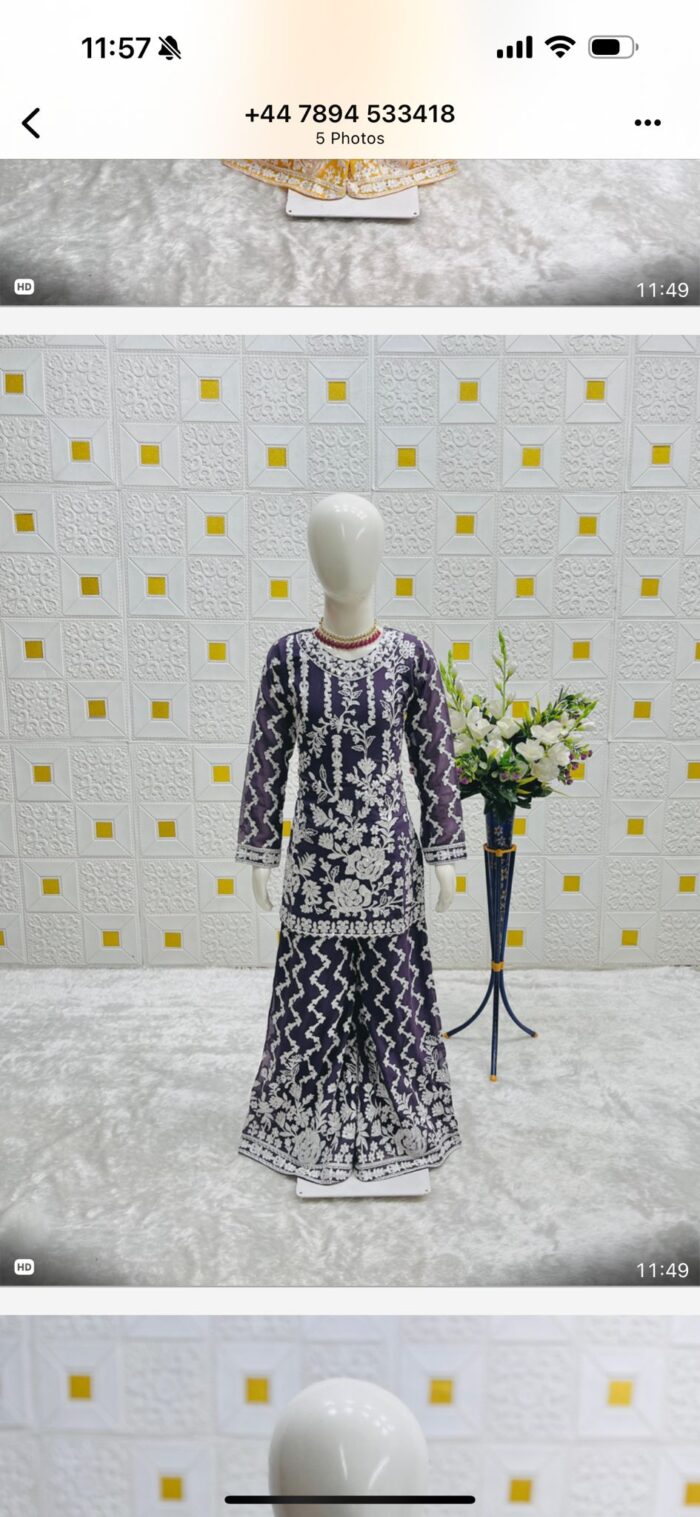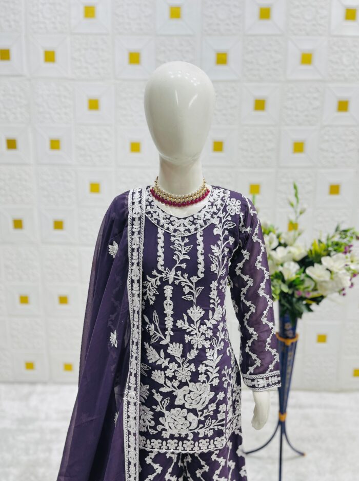 Faux Georgette Sharara and top with dupatta with embroidery chain work
