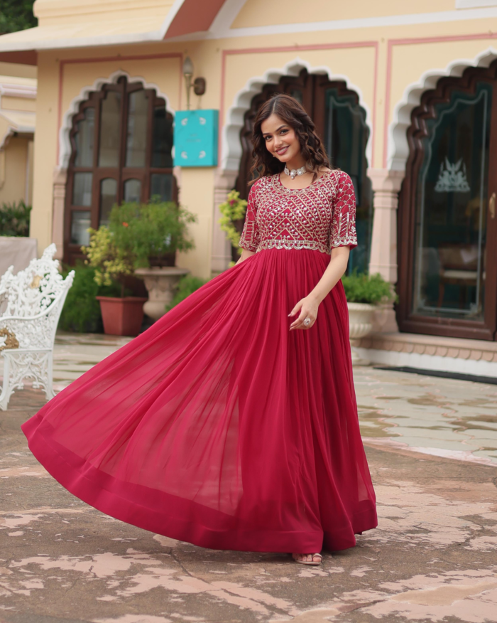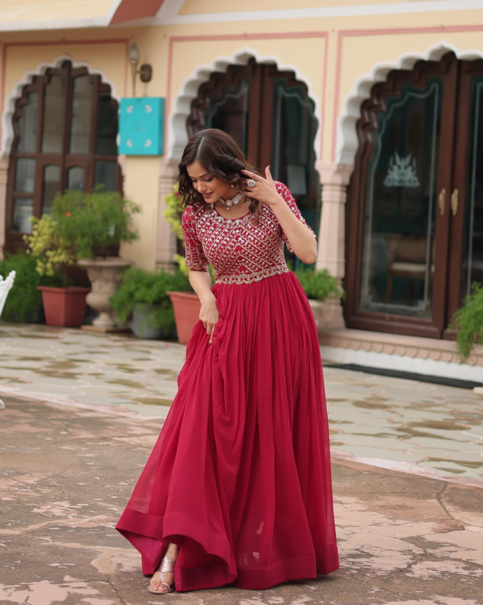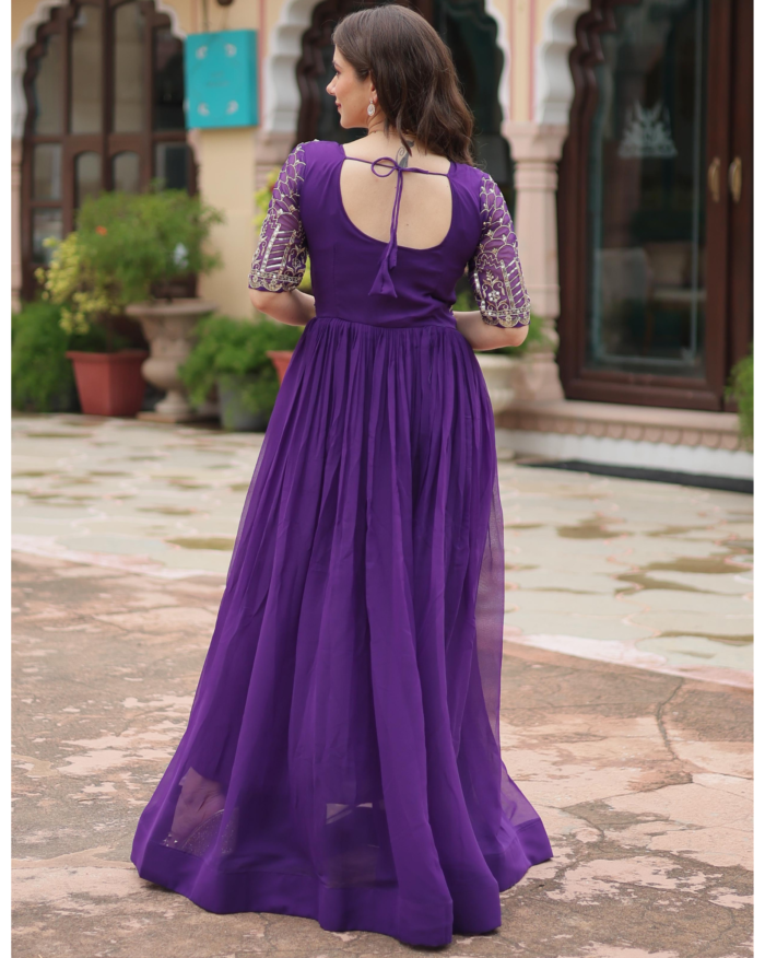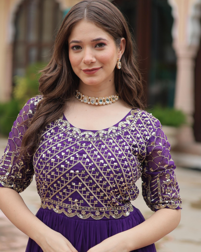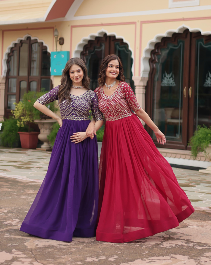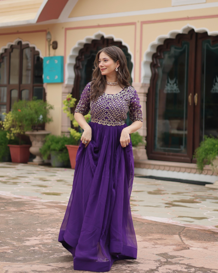 👉🏻 FABRIC & WORK:- Faux Blooming with Embroidery Zari Sequins-work