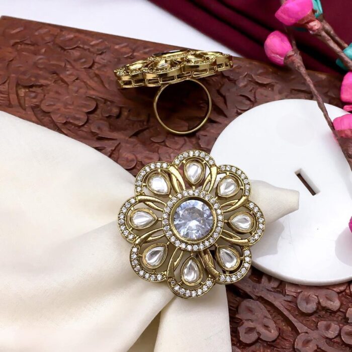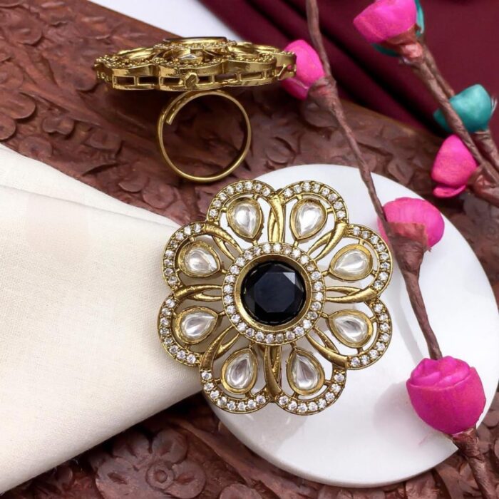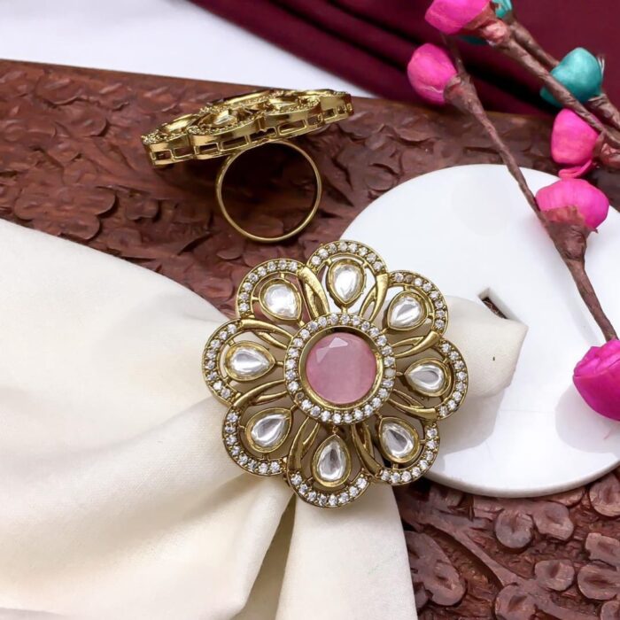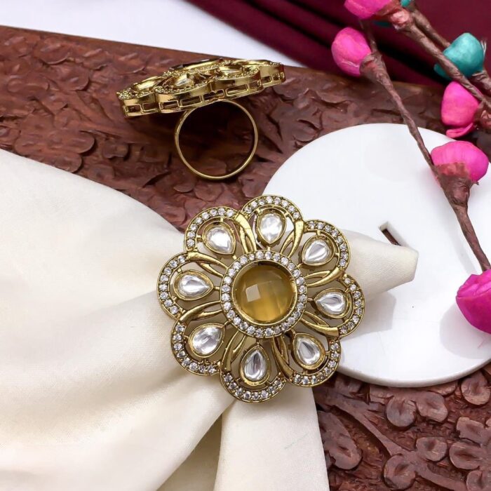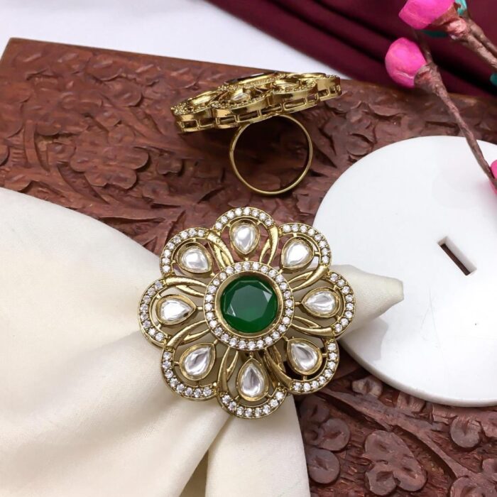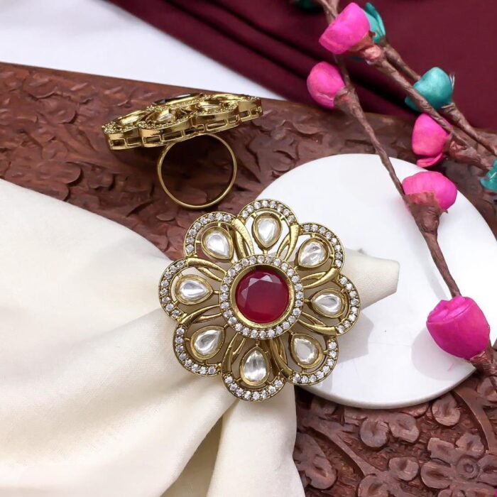 These good quality Kundan rings are characterized by their intricate craftsmanship, rich use of gold, and the flawless setting of stones