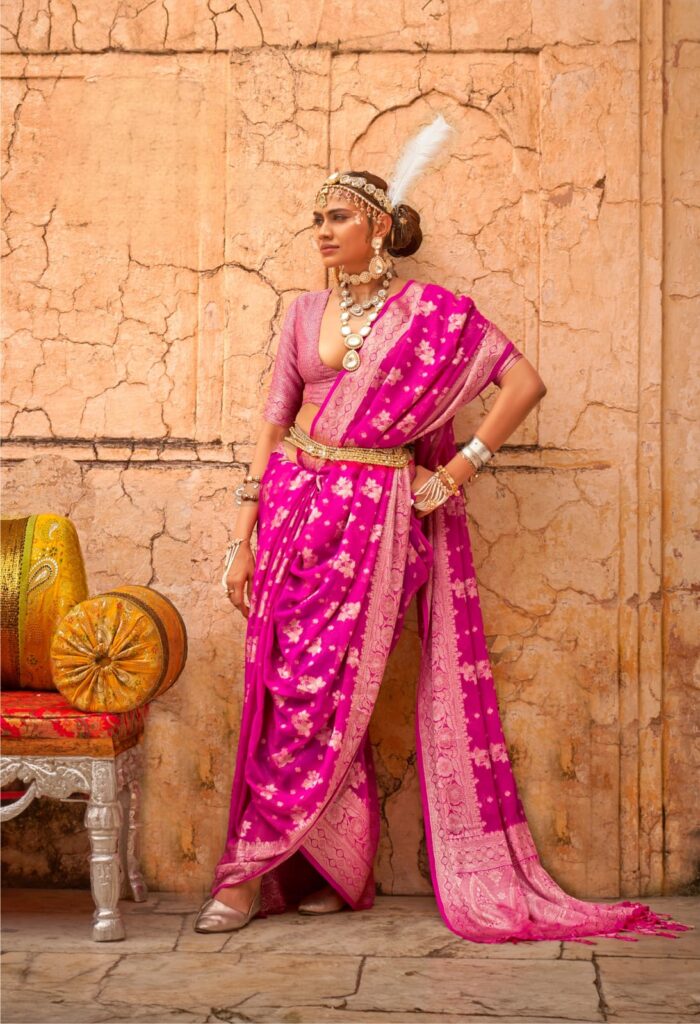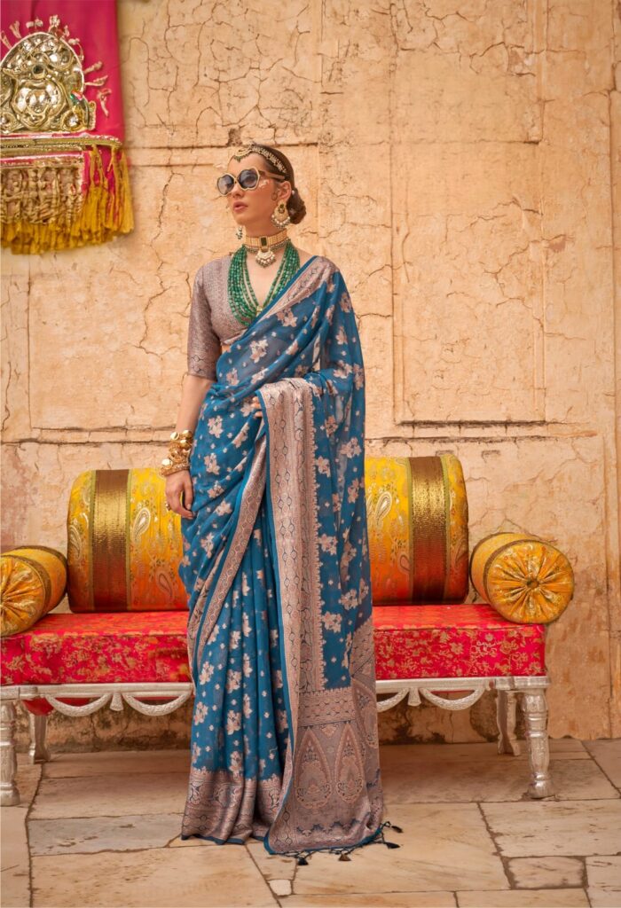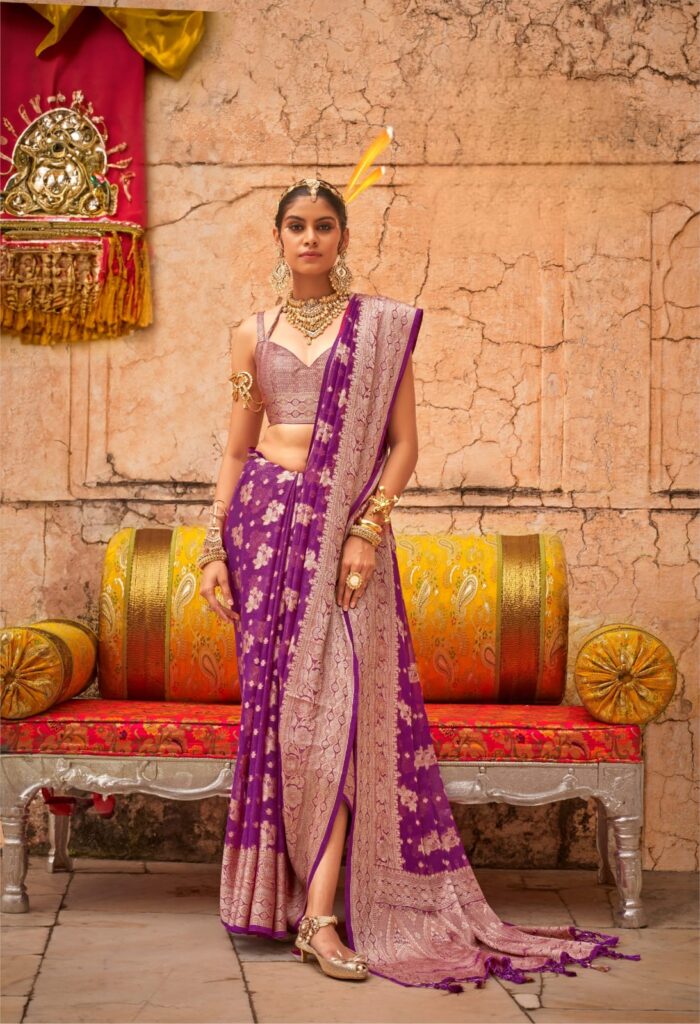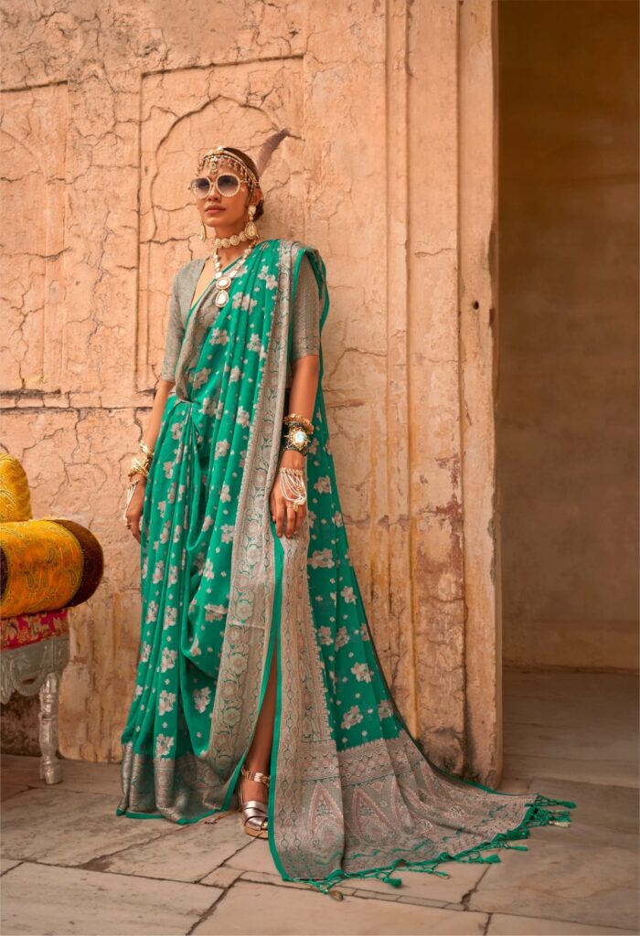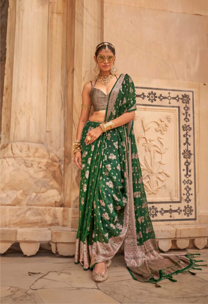 Georgette With Weaving Butta Border Pallu With Premier Coating And Soft Touch Finish