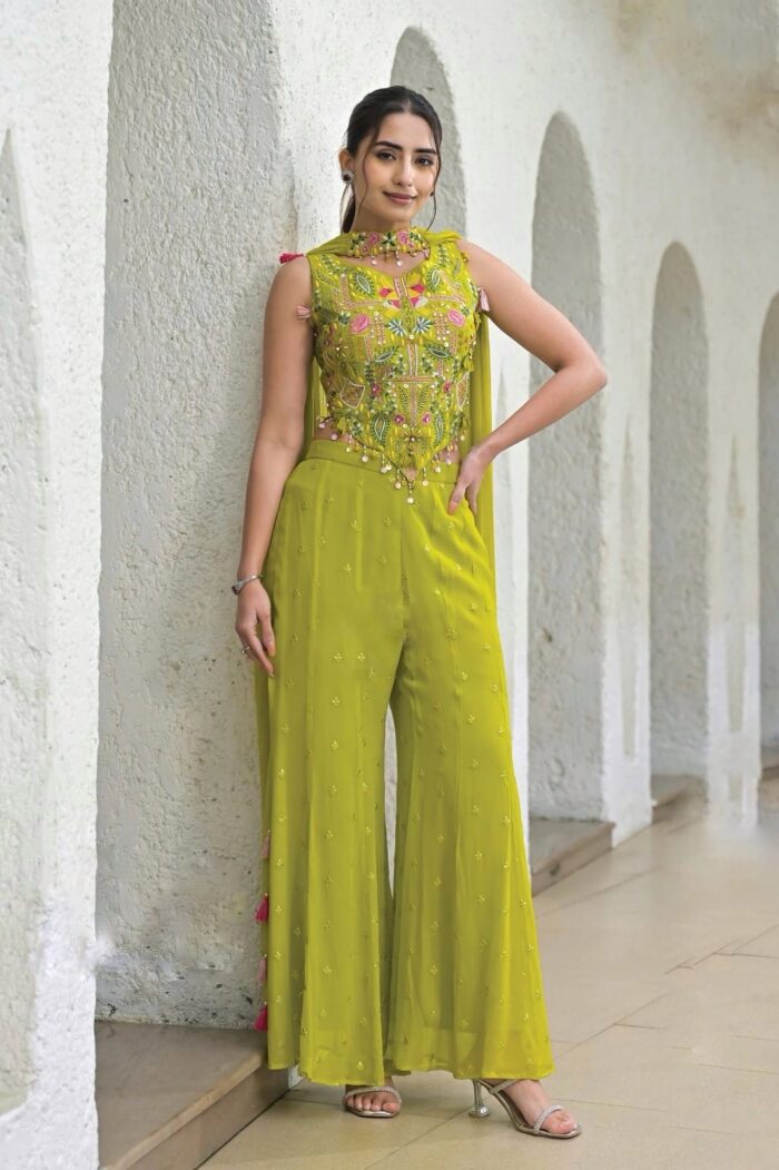 Embroidered beaded top with Georgette pant