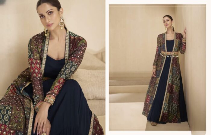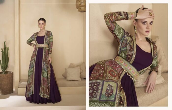 Georgette Gown With Silk Shrug