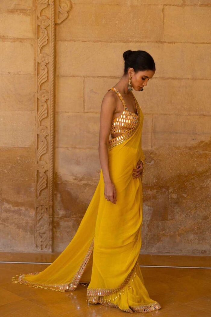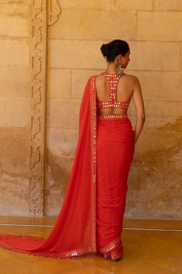 Georgette Heavy Mirror Work Saree With Mirror Work Embroidered Blouse