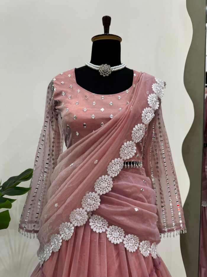 Stitching type : Ready to wear upto 42 with elastic with side zip