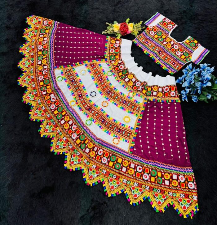 LEHENGA : Pure Rayon Cotton WITH Embroidery Work Border and Real Mirror Work..
