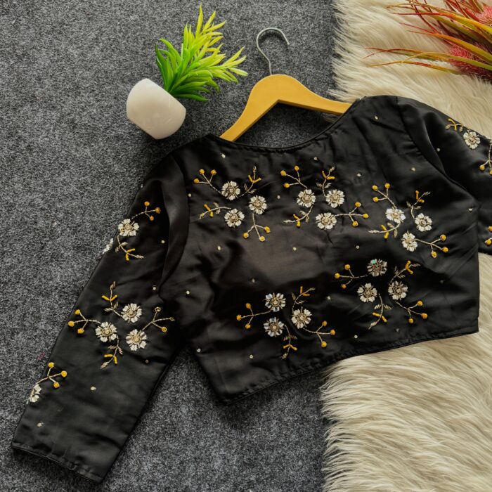 A beauty of golden handwork with colourful thread and sequence all over blouse