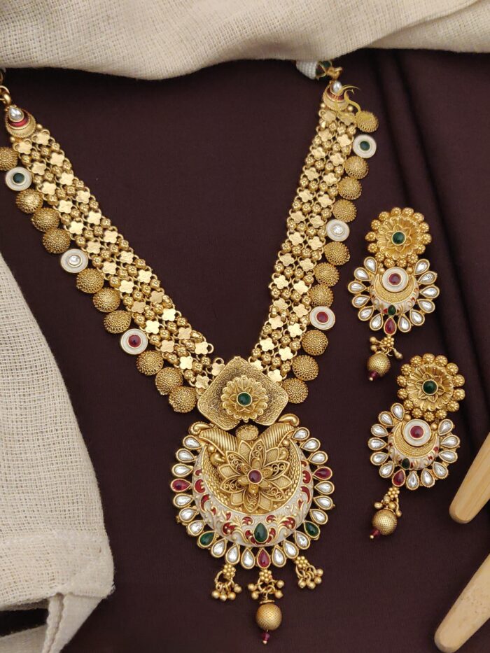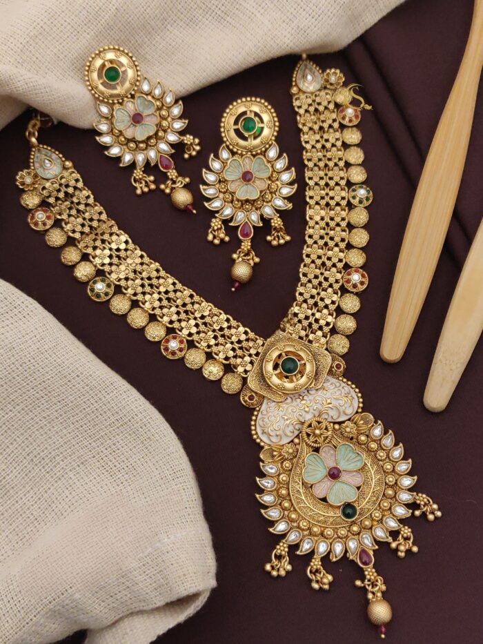 Our heavy collection of beautiful necklace sets that would look great with plain silk sarees like Mysore silk sarees