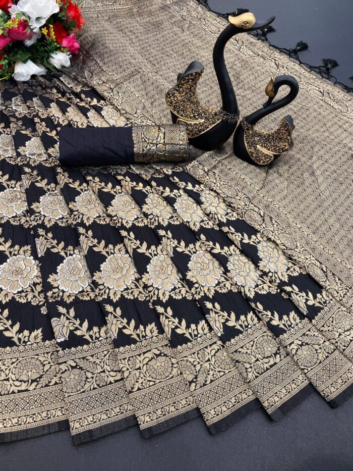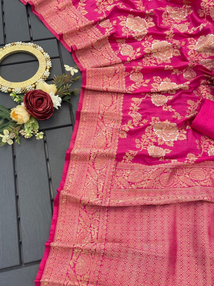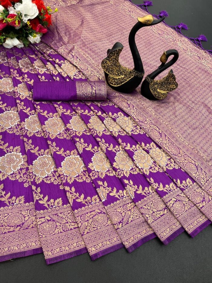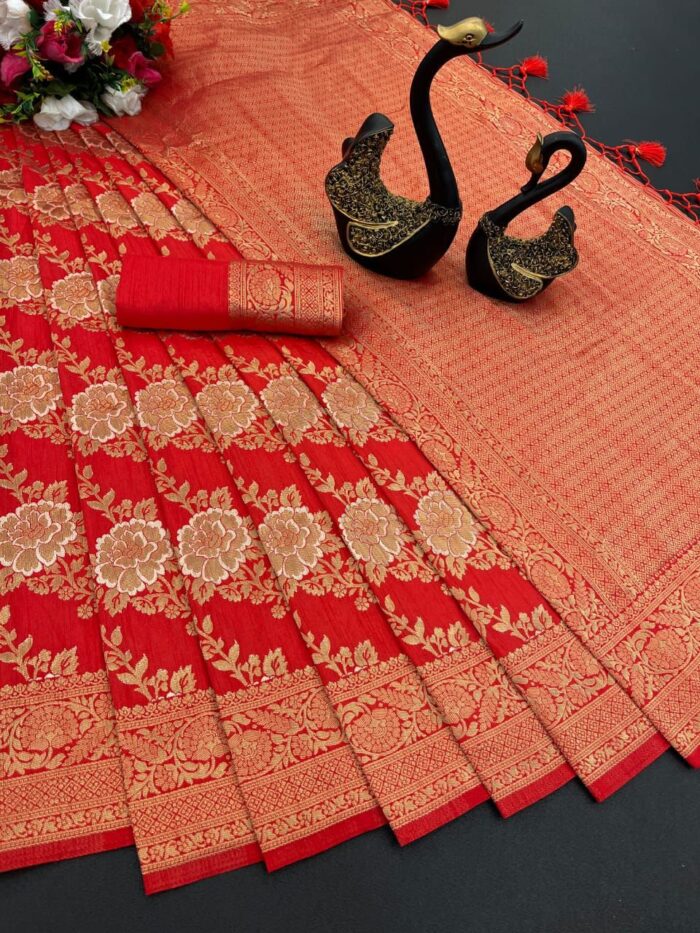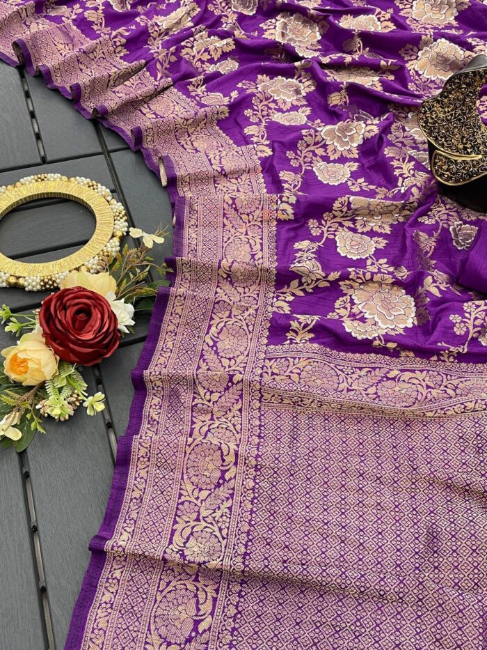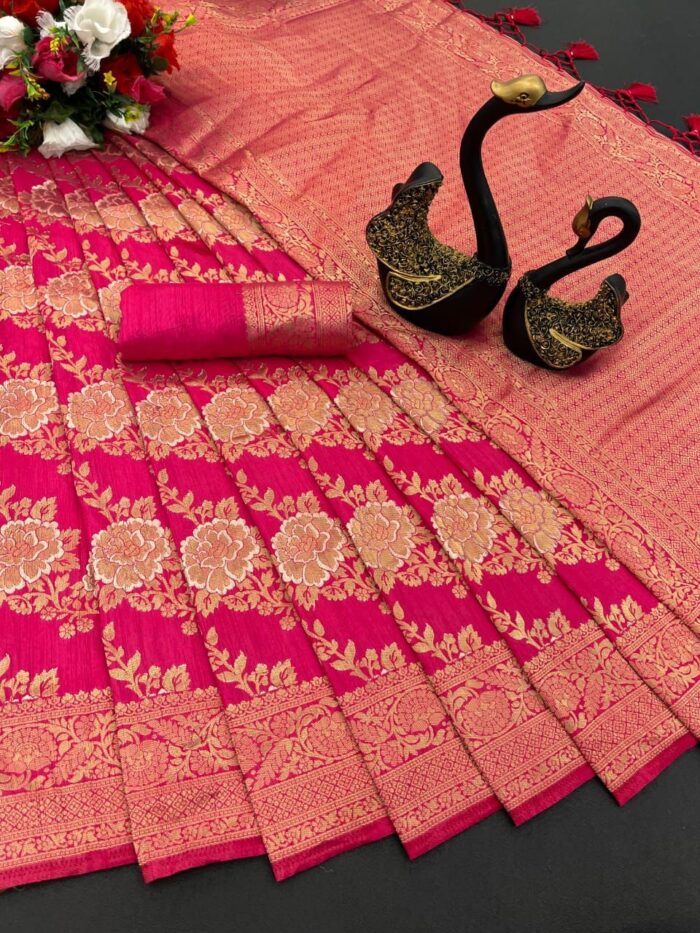 Pure Soft Khadi dola Silk Saree With Rich Zari woven Pallu. The saree has  Fancy Tassels and an unstitched running  Barcode Blouse