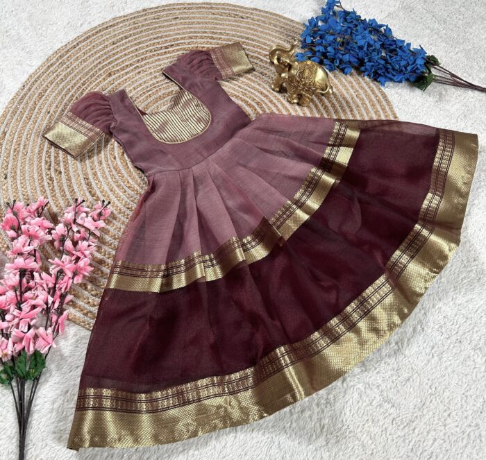 New arrival! Barbie-inspired Mysore tissue silk gown for kids. Luxurious feel, affordable price and perfect for special