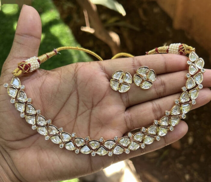 Light blue anarkali gown with gold sequins and embroidery. If you would like a simple elegant look you can just wear it with Kundan earrings. If you would like a more dress up, look that are two choices of necklace sets