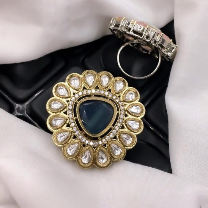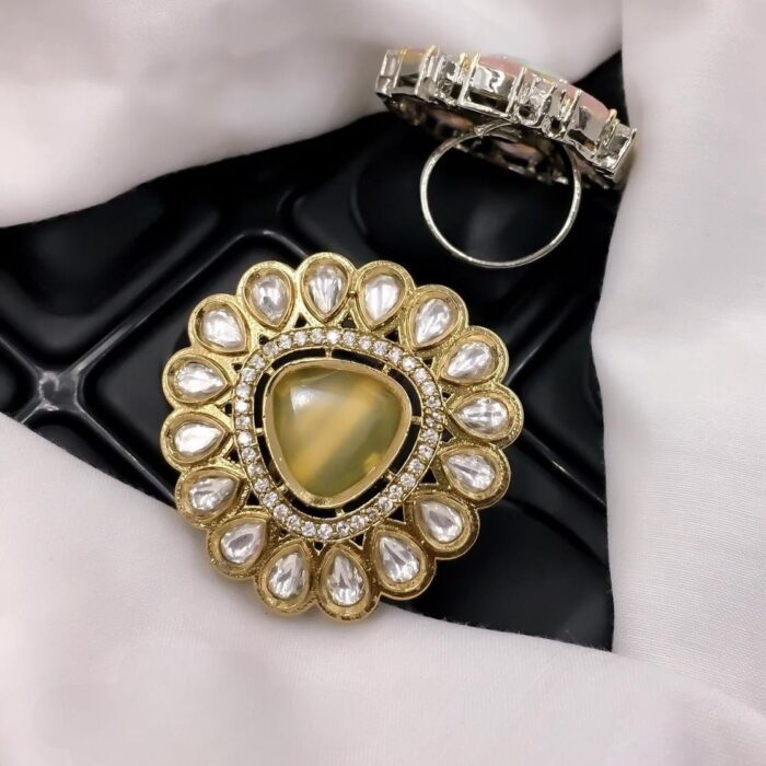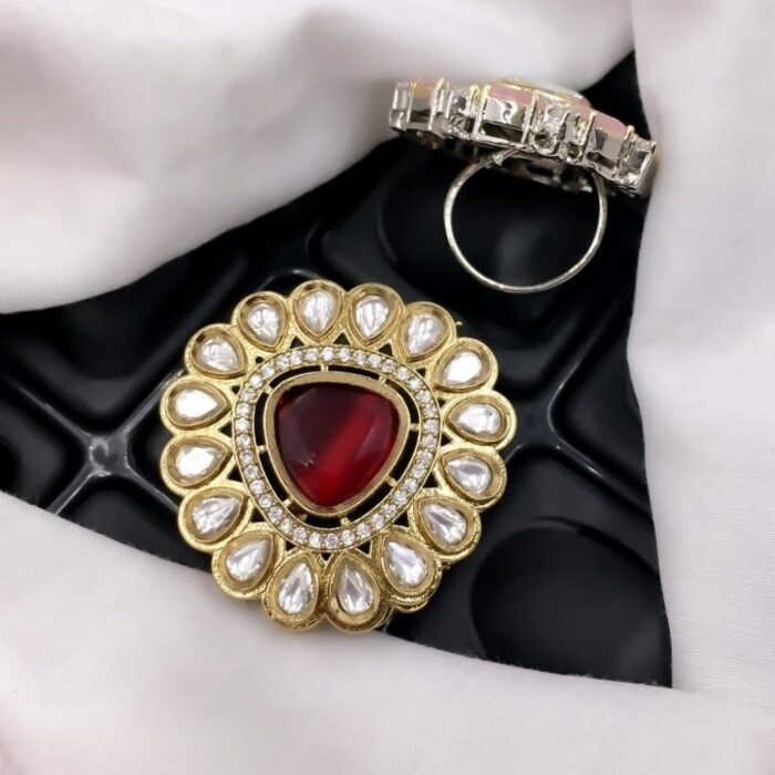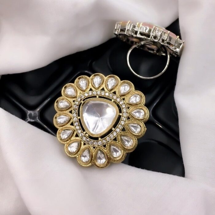Large Statement Kundan Rings with White Stones