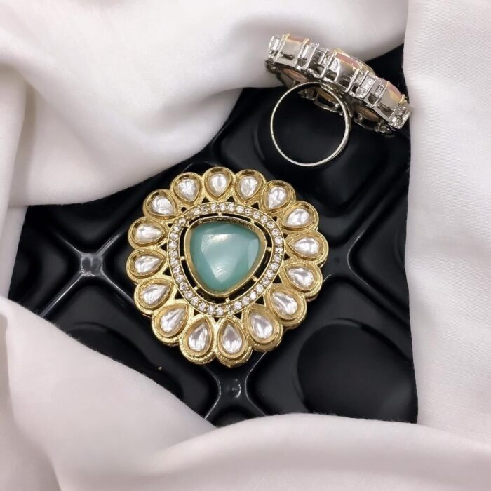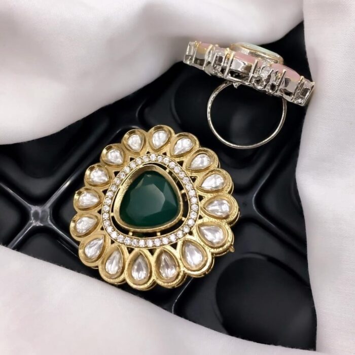 These good quality Kundan rings are characterized by their intricate craftsmanship, rich use of gold, and the flawless setting of stones