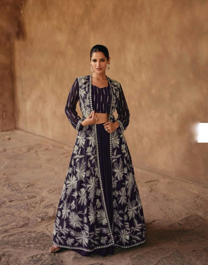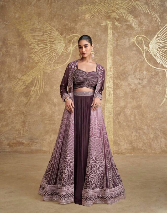 Georgette Lehenga choli with long jacket