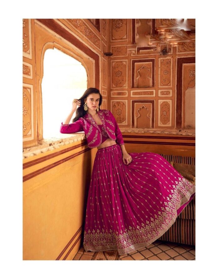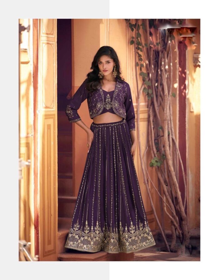 Georgette embroidered Lehenga choli with short jacket
