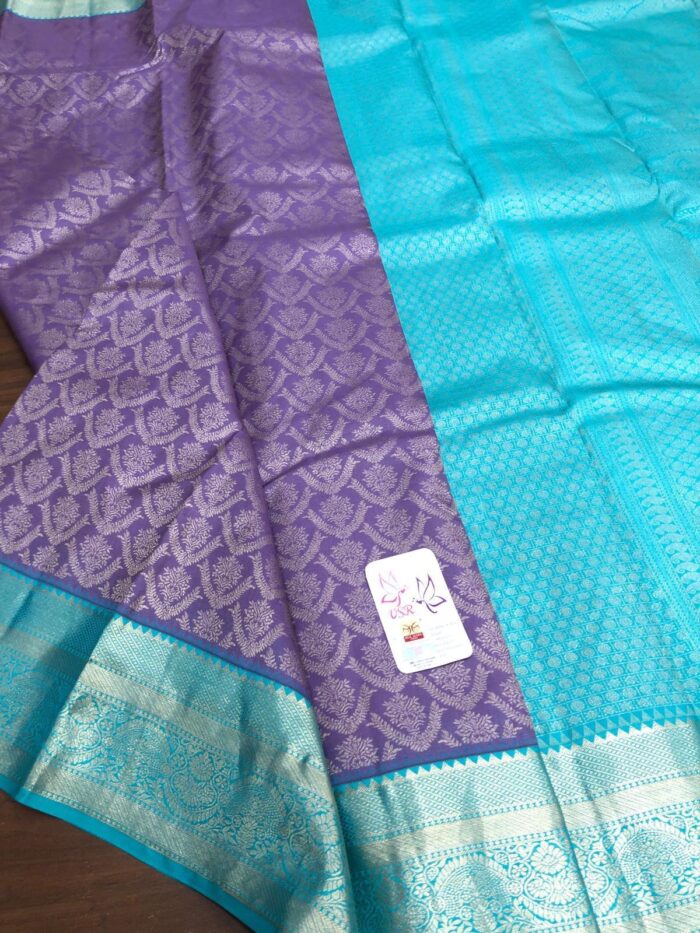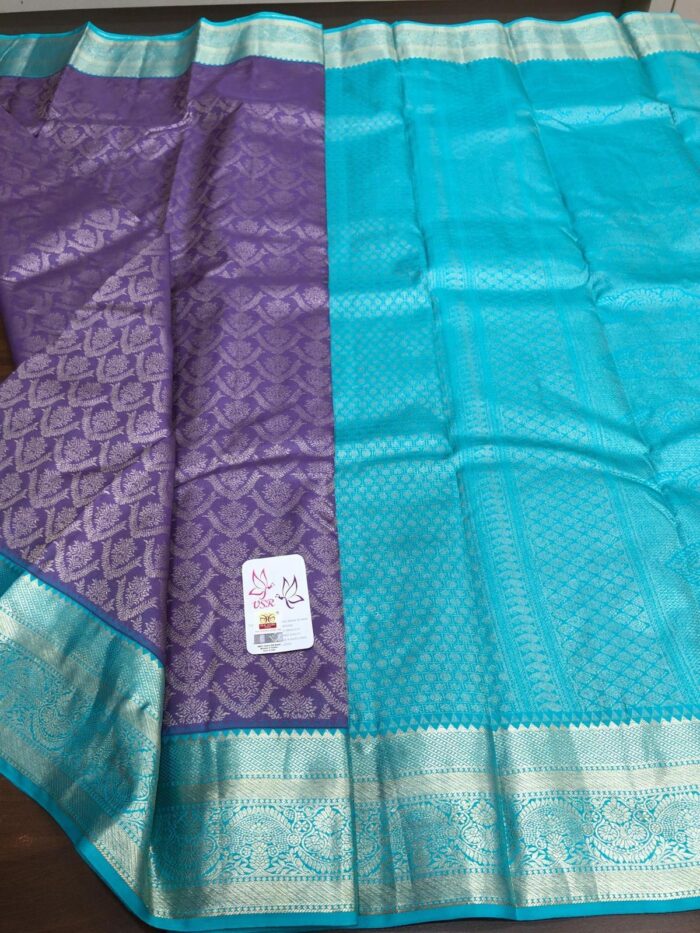 Light blue and purple pure kanchipuram silk saree with 1 gram gold zari