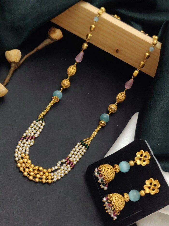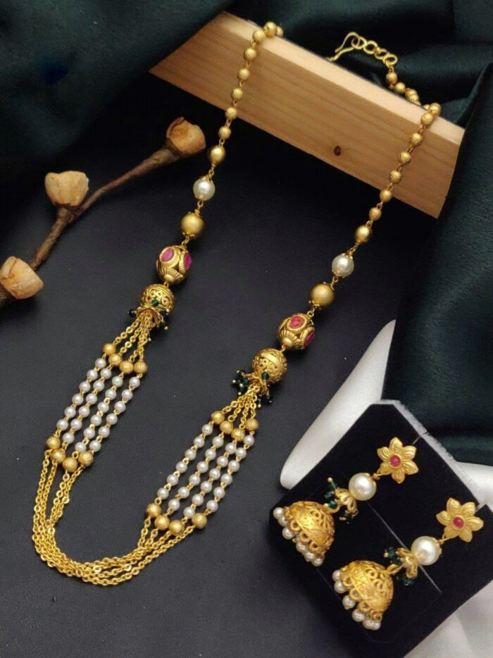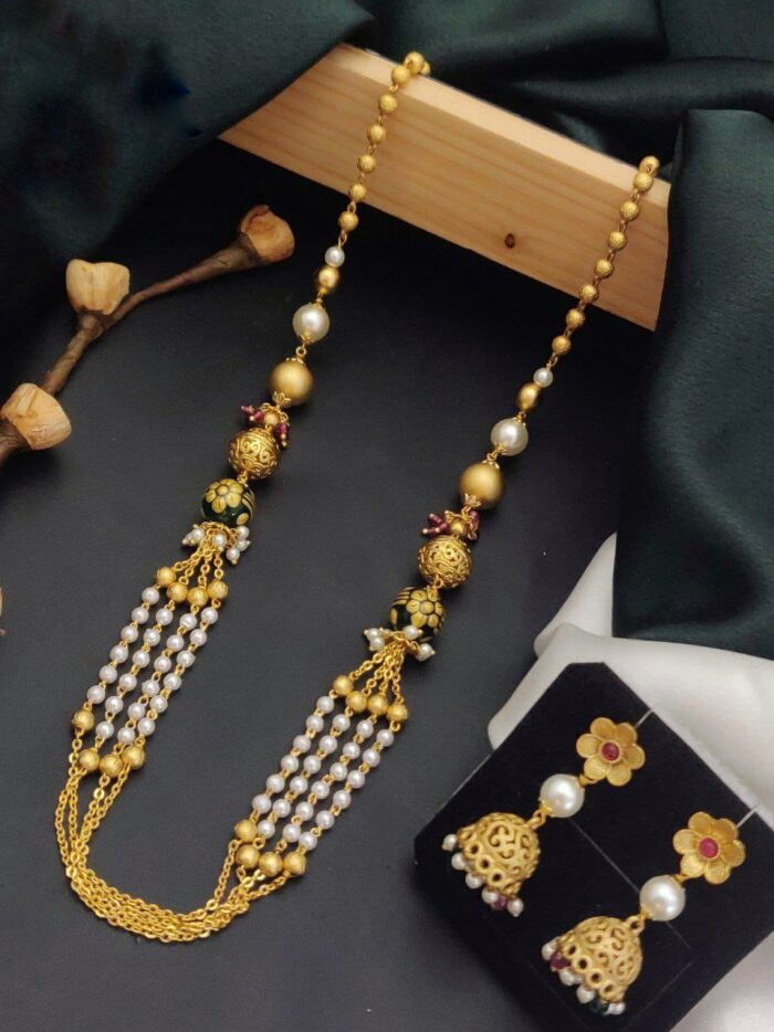 Long gold beaded necklace