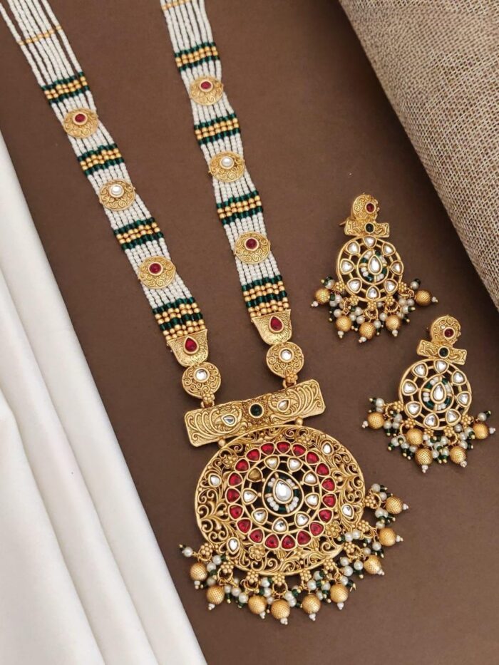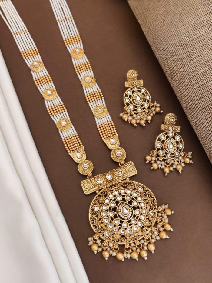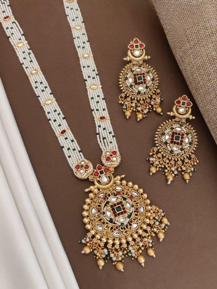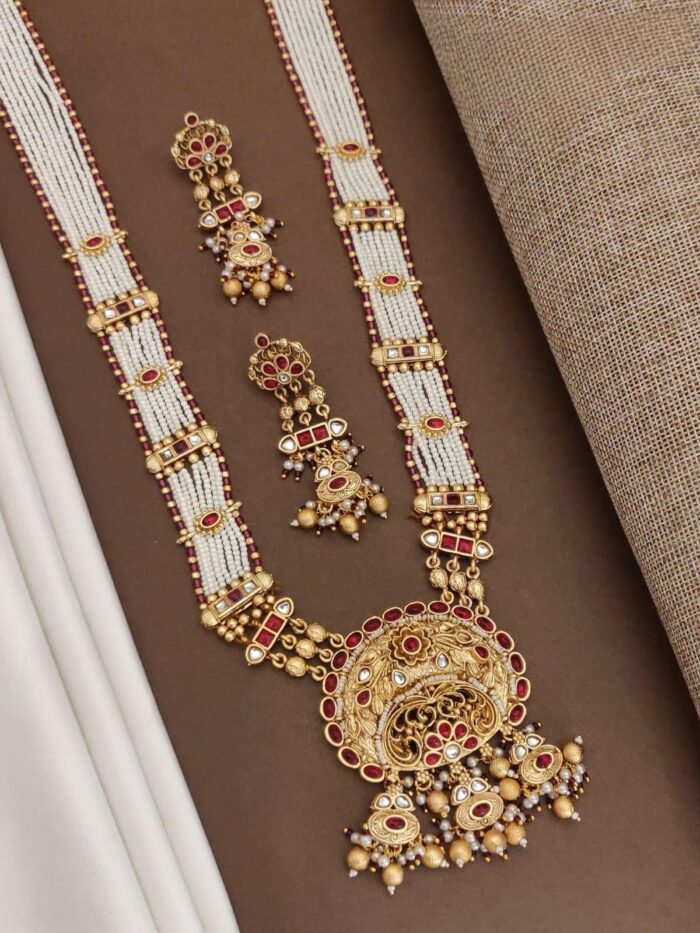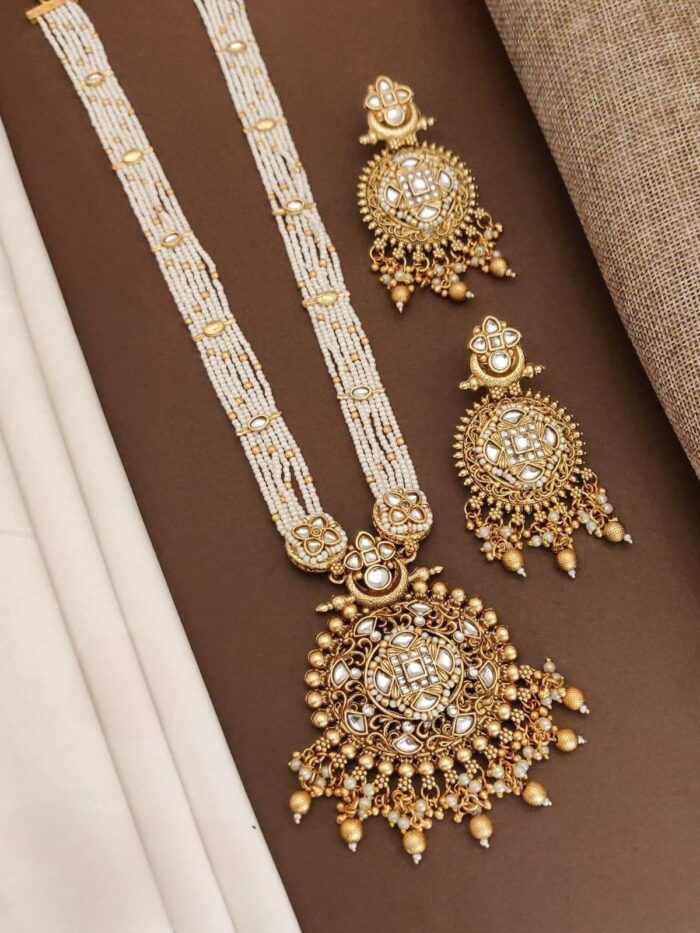 There Antique pearl long necklace sets are a timeless and elegant choice of jewelry, featuring intricate designs and luxurious pearls.