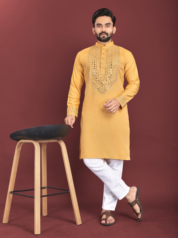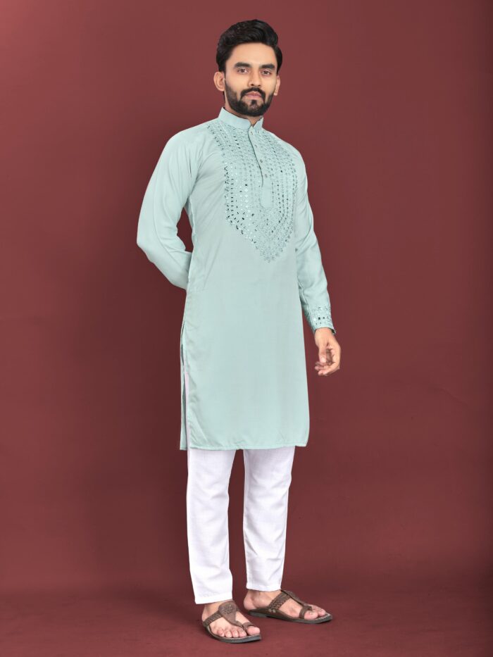 Kurta Detail: Real mirror handwork design on neck & sleeves
