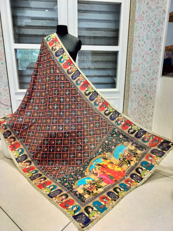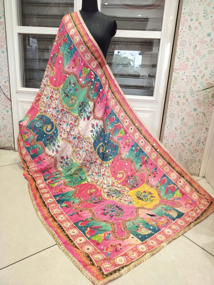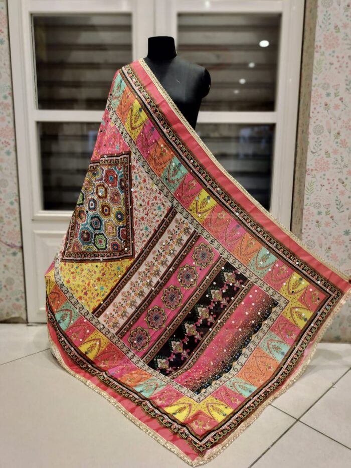 Mirror work silk dupatta