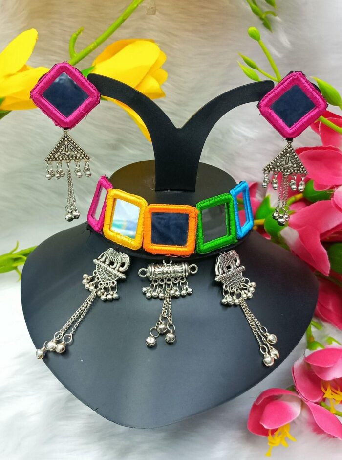 Multicoloured Oxidised thread necklace set