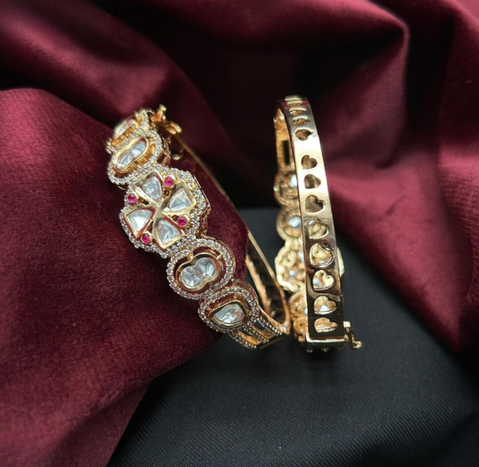 Elegant Openable Kundan Bangles with Carat Gold Plating