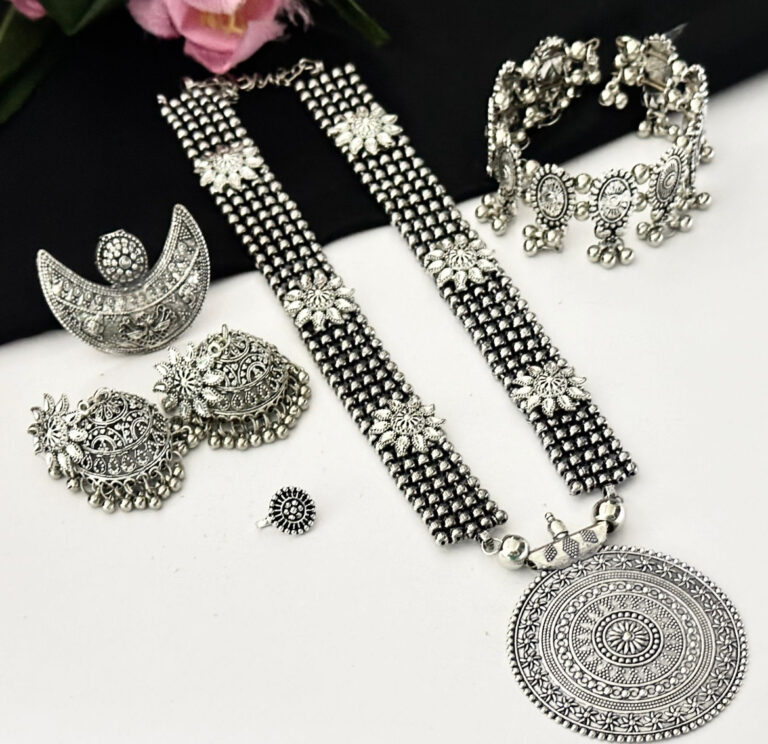 Oxidised Long Necklace Set